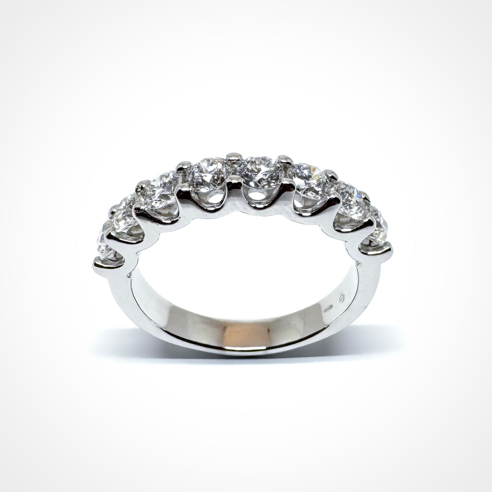 Mitja aliança d'or blanc de 18 quirats.Curosament dissenyada amb una tira de vuit diamants talla brillant, engastats amb grapes de 1,01ct total.
