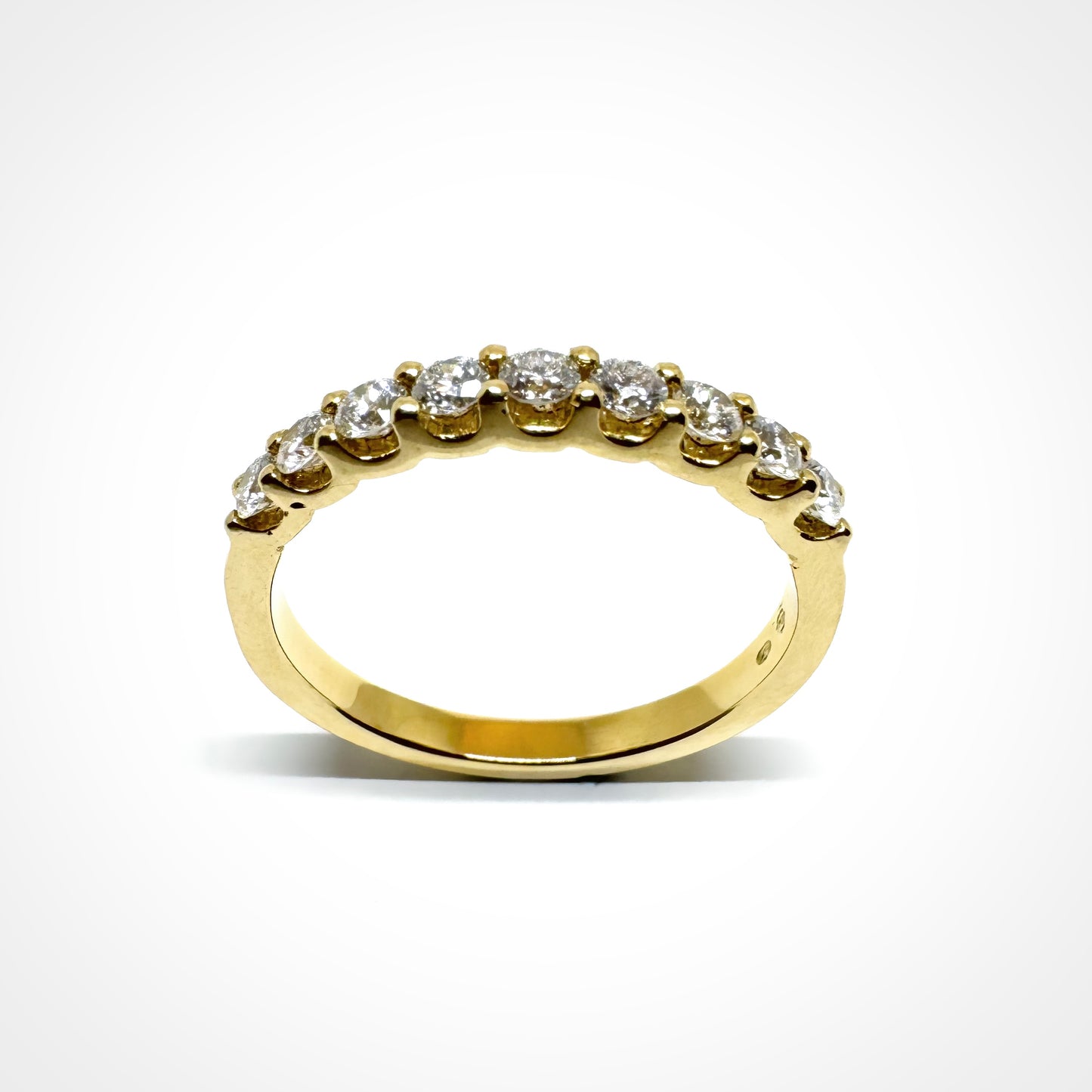 Mitja aliança d'or groc 18k de grapes amb 9 diamants blancs talla brillant de 0.040ct cadascun.